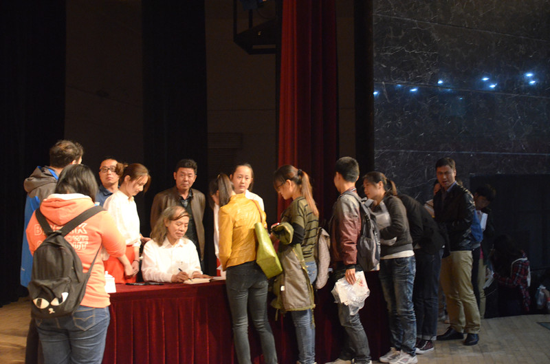 他与现场的同学进行了亲密互动,在游戏中告诉大家做人的道理。会后,他的《四书》进行现场签售,等待签名的持书同学排起了长长的队伍,大家对蔡志忠的喜爱不言而喻。