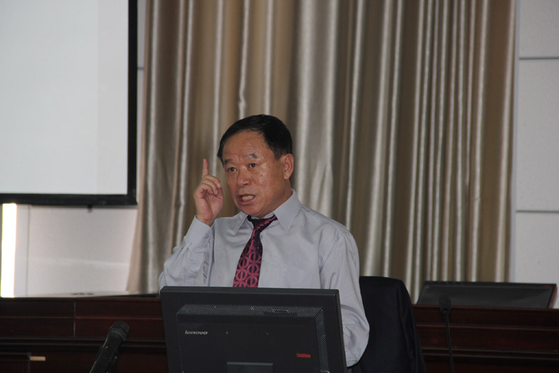 随后,金基石教授为在场师生作了题为“关于韩国语特点的再认识 —— 中韩语言对比视角”的报告。在报告中,金教授分别从中文、英文的语言和文化两个视角出发,运用类比、分析、例证等手法,对韩国语学习提出了独具特色的新方法和新技巧。他详细阐述了中韩两国经济文化交流的悠久历史,对中韩两国社会文化的异同进行了深入分析,并对比中文、韩文两种语言,提出了“发音类比”、“举一反三”、“旧友新识”三种学习方法。他同时分析了韩国文化与西方文化的异同,并将英语与韩国语进行比较,在词汇学习和语法结构学习两方面提出了实用的学习方法和技巧。金教授的报告内容丰富、分析深刻、引人入胜,激发了全体师生对韩国语学习与研究的强烈共鸣,是一场生动而又精彩的学术普及盛宴。