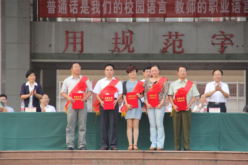党委副书记刘新生宣读2012-2013学年获得省级以上奖励的先进集体和个人名单,2013年优秀教育工作者、优秀教师和从教30周年教育工作者名单。在主席台就座的领导为获奖代表颁发了荣誉证书。