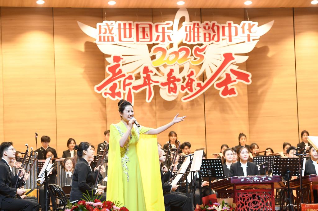 音乐会以民族管弦乐《春节序曲》拉开序幕,欢快的节奏和动听的旋律瞬间点燃现场气氛。在音乐会的上半场,二胡独奏《一枝花》浓郁的鲁西南风味在琴弦间流淌,原创弹拨乐重奏作品《峥嵘》致敬的党的辉煌奋斗历程,吹打乐《庆丰收》用音乐描绘出丰收的喜悦场景,笙独奏《微山湖船歌》似微山湖的山水画卷徐徐展开,民族声乐《沂蒙山小调》《谁不说俺家乡好》等经典曲目唤起人们对家乡的热爱与眷恋。下半场,古筝合奏《黄河》气势磅礴,将黄河儿女的英雄气概和民族抗争精神完美呈现;二胡齐奏《战马奔腾》生动再现了骑兵战士的英勇战斗场景,室内乐《兰陵王破阵乐》采用中西乐器结合的方式表现出雄浑旋律,唢呐与乐队《百鸟朝凤》模仿百鸟和鸣惟妙惟肖,民族声乐《包楞调》《龙船调》展现了不同地域的独特风情,民族管弦乐《我的祖国》激昂奏响,将音乐会推向高潮,深情歌颂了伟大祖国的美好和中华儿女的奋斗精神。