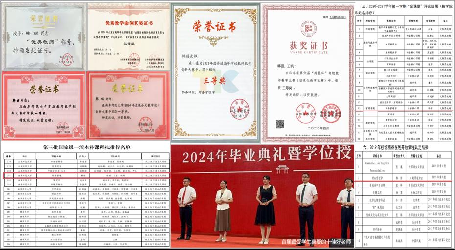韩丽老师依托《财务管理学》获得的部分教学成果