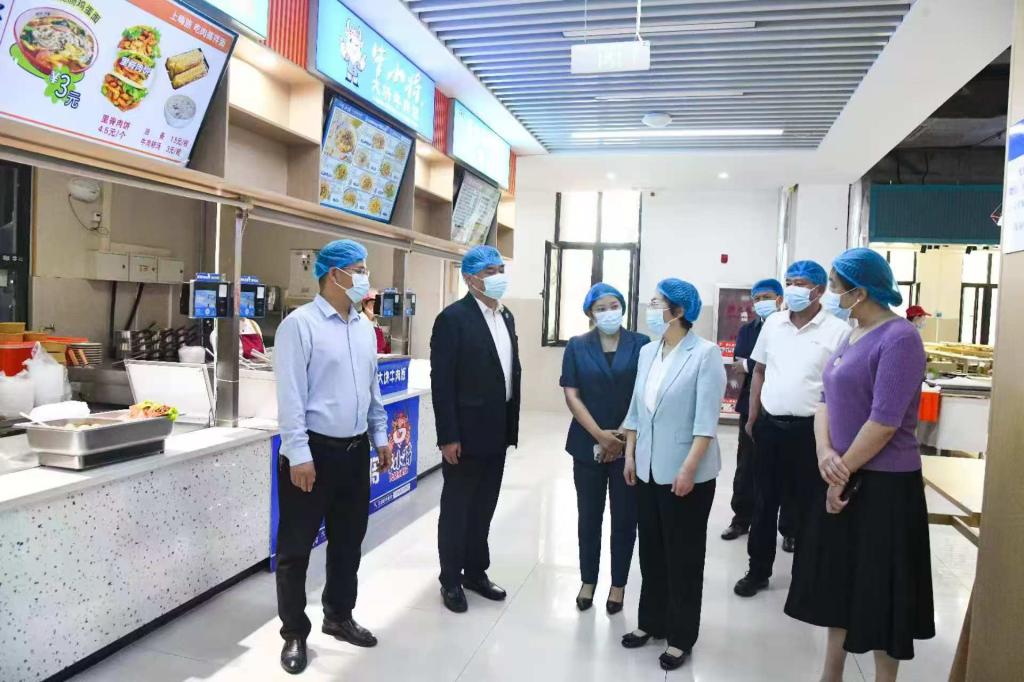 李丽现场听取了后勤管理处相关负责人关于食品安全管理工作汇报,重点检查了食材的存储、炒制、售卖以及餐具清洗消毒、相关工作记录存档工作。