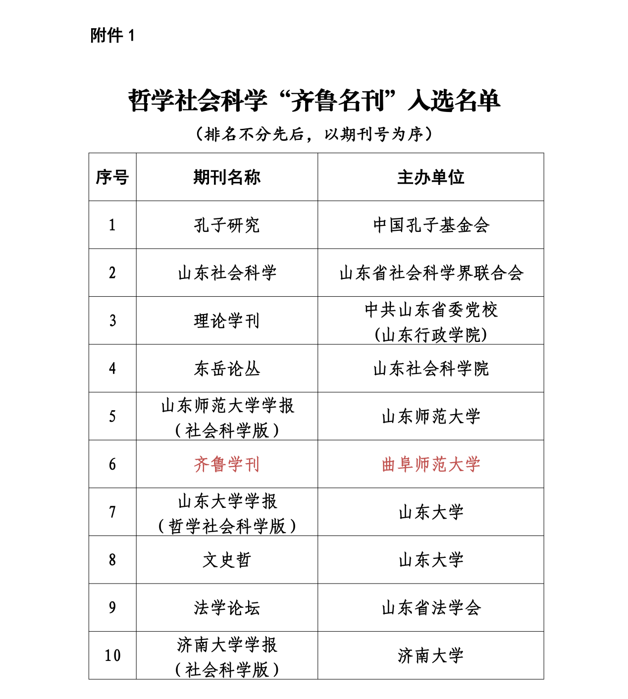 《齐鲁学刊》讯 近日,山东省委宣传部公布了2024年度山东省哲学社会科学“齐鲁名刊”入选名单,《齐鲁学刊》成功入选,并有两篇文章入选“齐鲁报刊名篇”,为三亿网页版登录入口70周年校庆献礼。