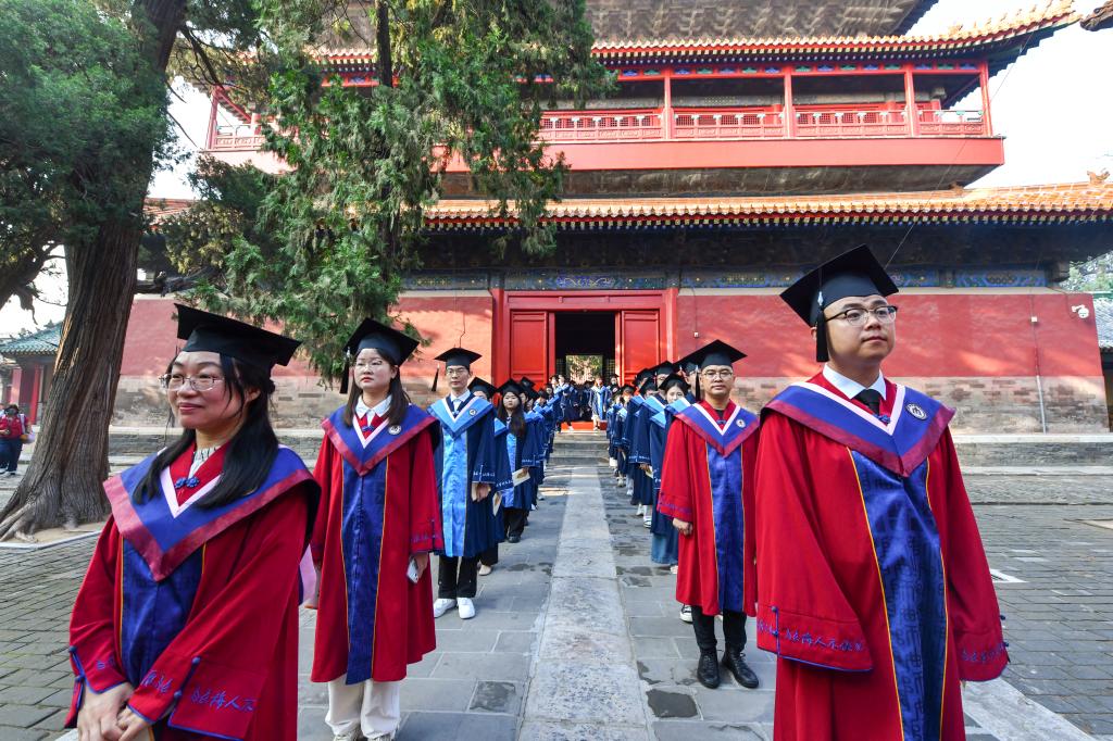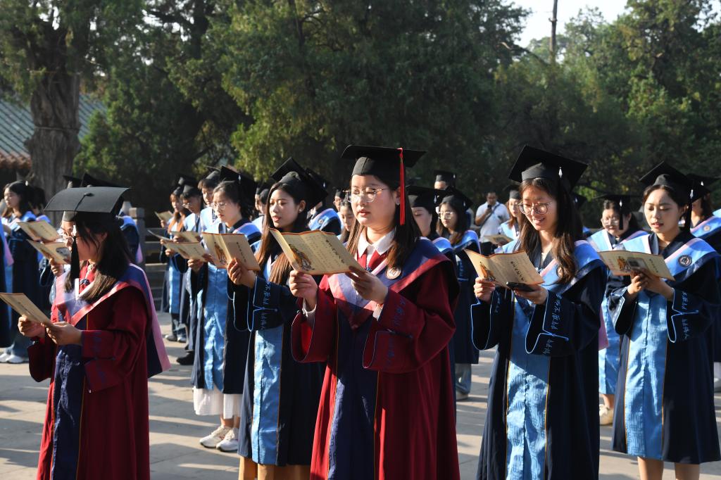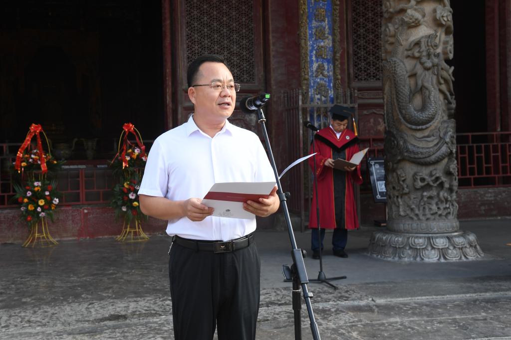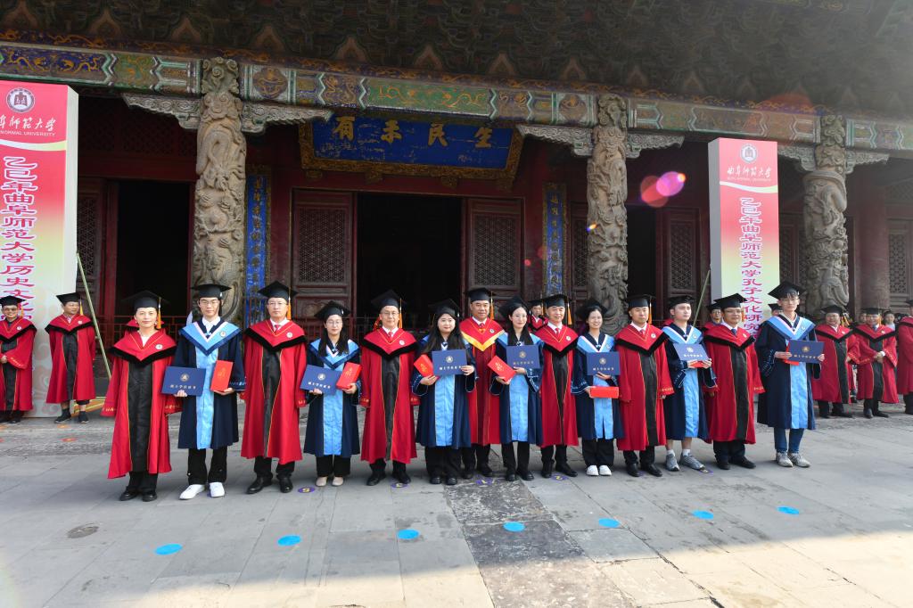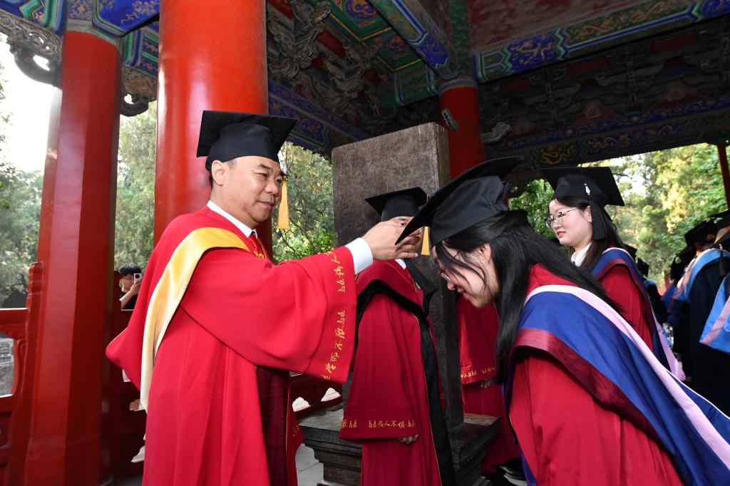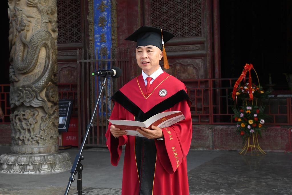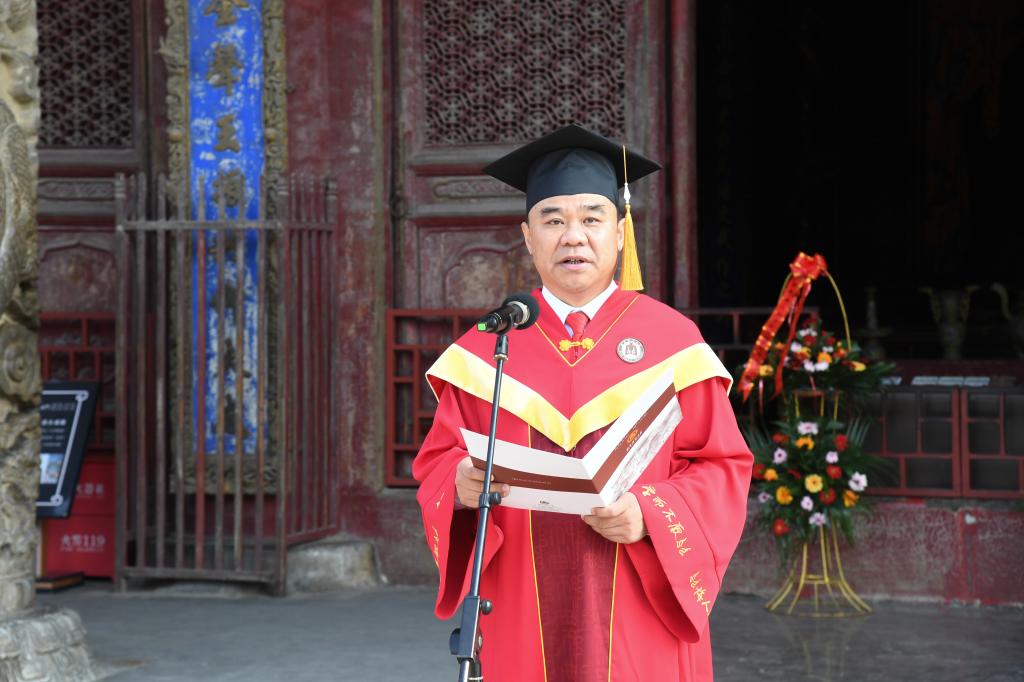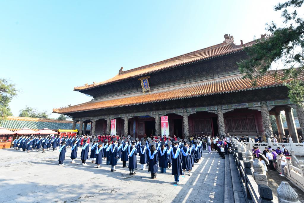 曲阜师大党委书记邢光带领导师团在孔庙杏坛为毕业学子拨穗正冠