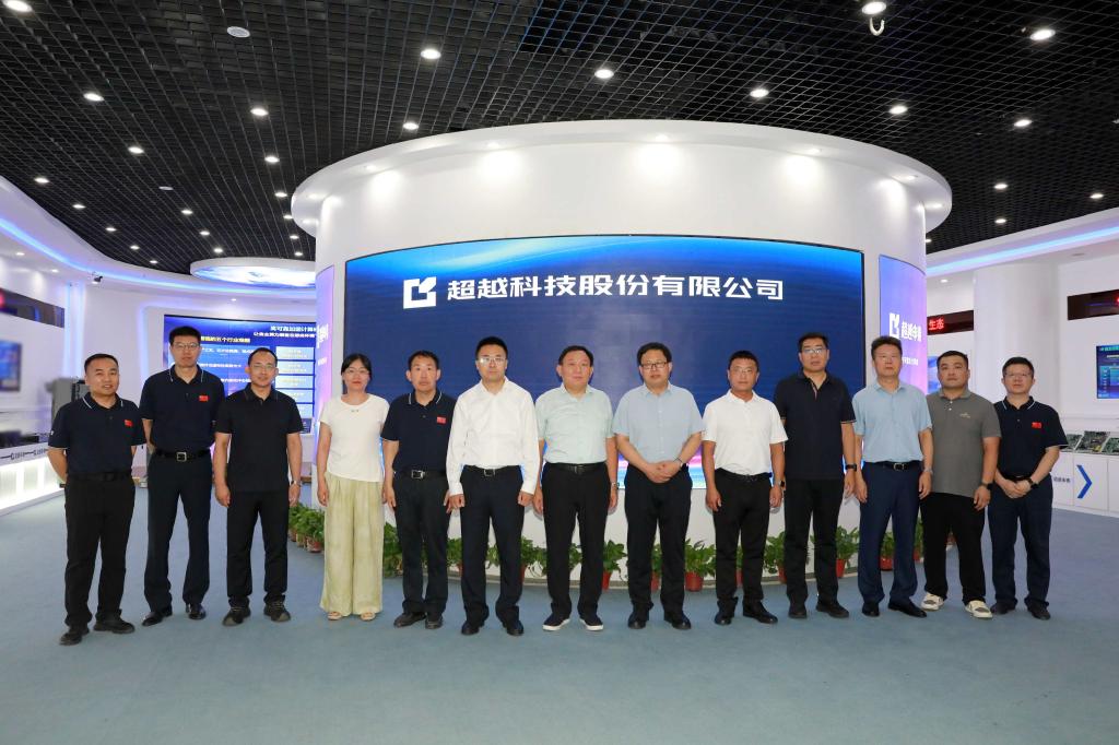 在超越科技股份有限公司,李登旺与公司总经理房伟、超越研究院院长孙超等座谈交流,参观柔性计算机产业化基地、环境与电磁兼容实验室等创新平台。双方就相关业务合作、科技成果转化等达成共识。