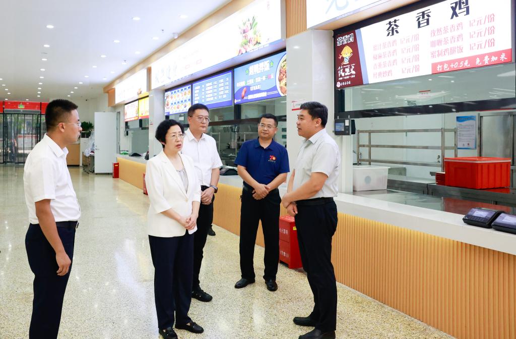 李丽现场听取了学校保卫处、后勤管理处、附属中学相关负责人就校园安全、周边环境治理、食品安全制度落实等方面的工作汇报,并对新生开学准备情况进行了详细了解。李丽强调,校园安全事关师生发展和社会稳定,要强化校园安全日常监管和风险隐患排查,确保各项措施落到实处;要持续完善食品安全管理机制,严把食材采购、加工、留样等关键环节,切实筑牢校园食品安全防线。同时,教师节即将到来之际,李丽向学校广大教师和教育工作者送上节日的祝福与诚挚的慰问。