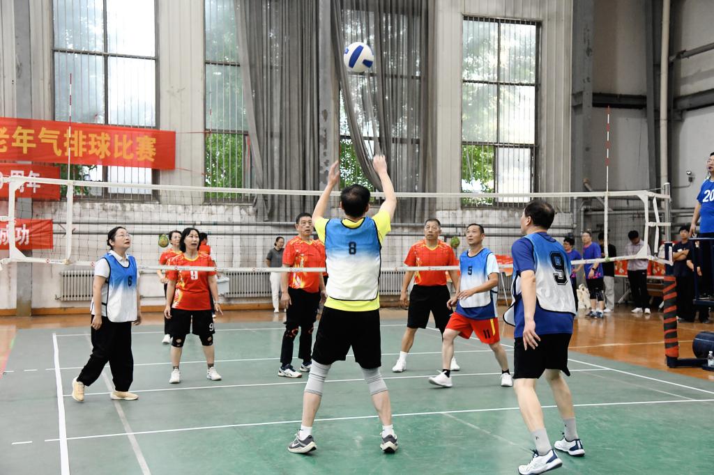 来自学校各部门、学院的八支代表队同场竞技。比赛中,老同志们全神贯注,斗志昂扬,精准的传球与有力的进攻屡见不鲜,充分展现了积极向上的精神风貌。他们凭借精湛的技艺、团结协作和拼搏精神,为现场观众奉献了一场场精彩对决,收获了阵阵热烈的掌声与喝彩。