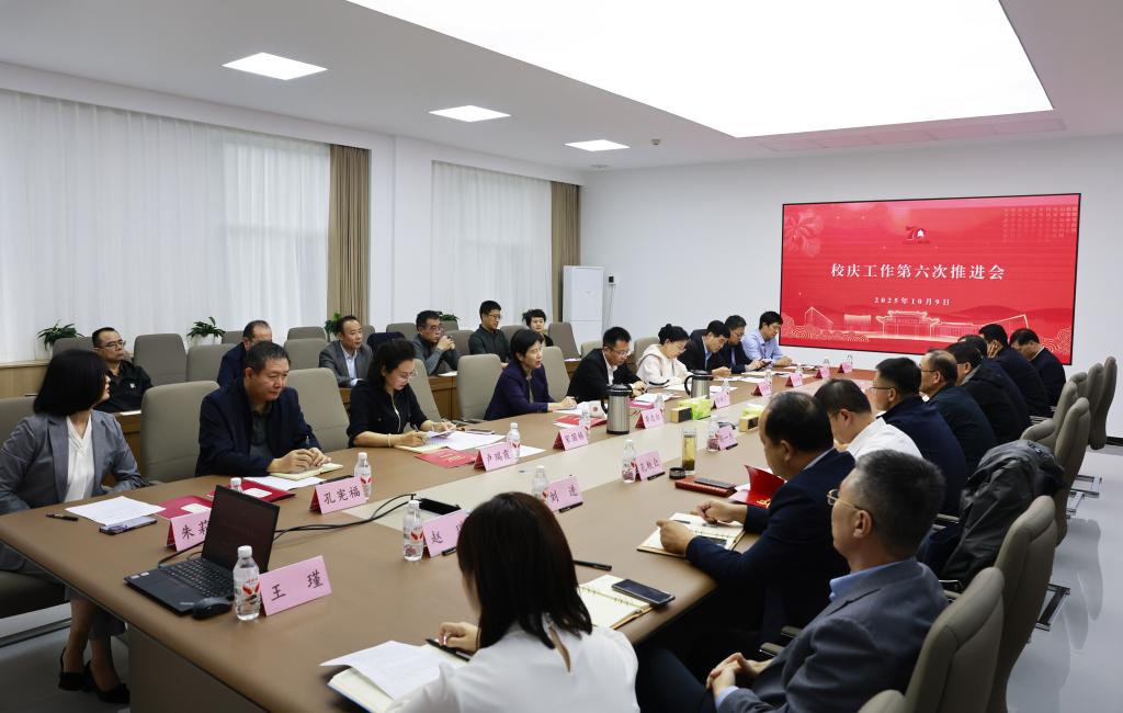 校庆工作办公室讯 10月9日,学校召开校庆工作第六次推进会。校党委副书记李志红,校党委常委,宣传部部长孙祥广参加会议。