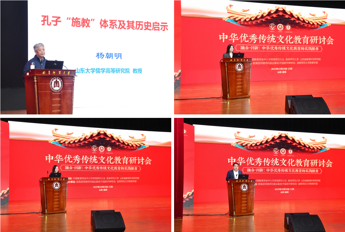 在主旨、专题报告中,与会专家学者围绕中华优秀传统文化教育的理论溯源、地方实践与创新探索展开深度分享。山东大学儒学高等研究院特聘教授杨朝明,中国教育学会中小学德育研究分会理事、山东省教育科学研究院课程中心主任张彩霞,香港特别行政区教育统筹委员会委员凌友诗,中国教育学会中小学德育研究分会副理事长、教育部课程教材研究所研究员、专题中心主任张广斌,分别以《孔子“施教”体系及其历史启示》《中华优秀传统文化教育的山东实践》《传统文化教育再思考——香港中小学的新探索》《中华优秀传统文化教育的认识与思考》为题作专题报告,为中华优秀传统文化教育的落地与发展提供了多元视角与实践路径。