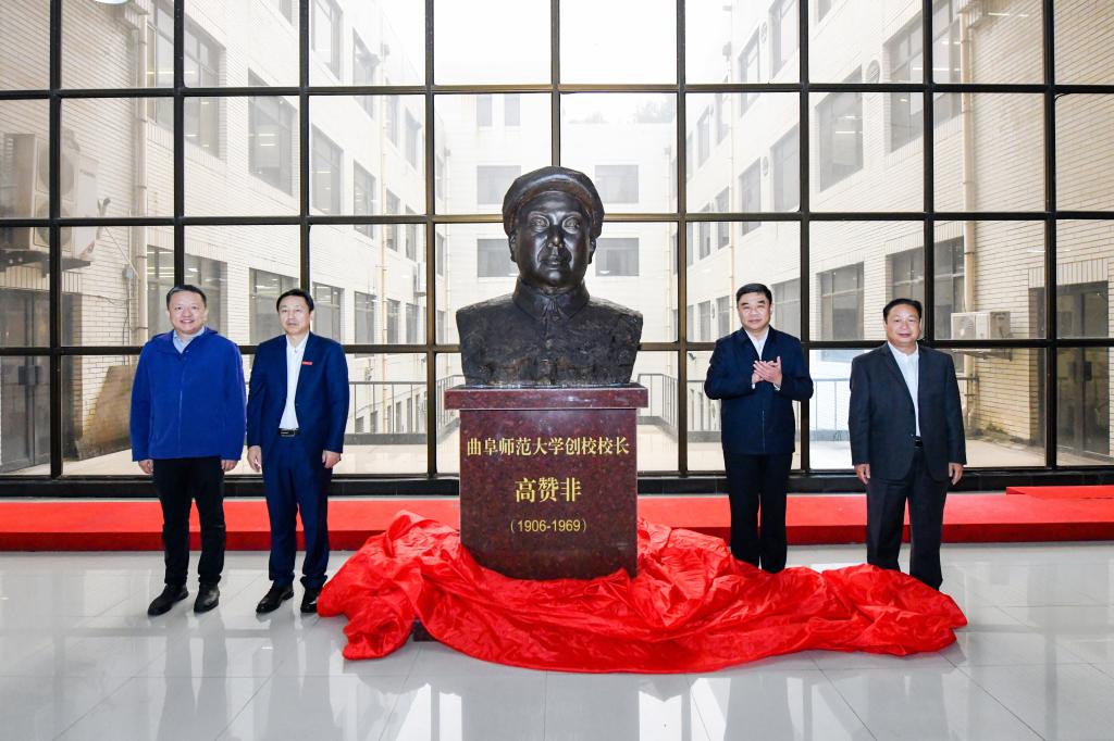 在全体与会人员饱含敬意的目光注视下,覆盖于塑像上的红色绸布徐徐揭开,高赞非老校长的半身塑像庄严呈现。塑像神态睿智、气韵深沉,令人生发无限追思与敬仰之情。