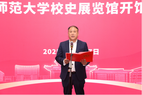 邢光在致辞中向为此次校史展览馆提升改造工程中付出辛勤努力的各方人员、所有史料捐赠者,特别是捐建者叶德才先生表示衷心感谢。他指出,校史展览馆是学校办学历程的缩影,是校园文化建设的标志性成果,更是开展爱校荣校教育的重要基地。在七十周年校庆这一重要的历史时刻,校史展览馆的提升改造,既是献给学校七十华诞的一份厚礼,也是对学校七十年办学历程的一次系统梳理与光辉呈现。