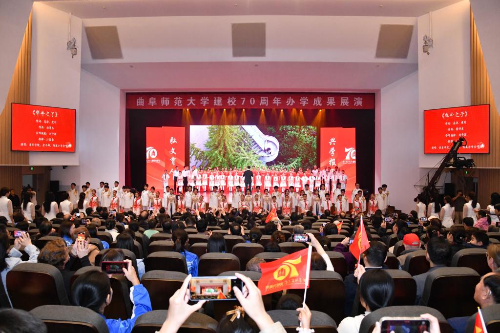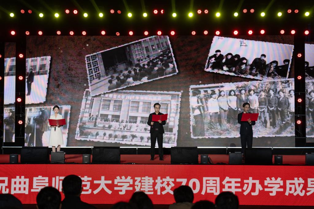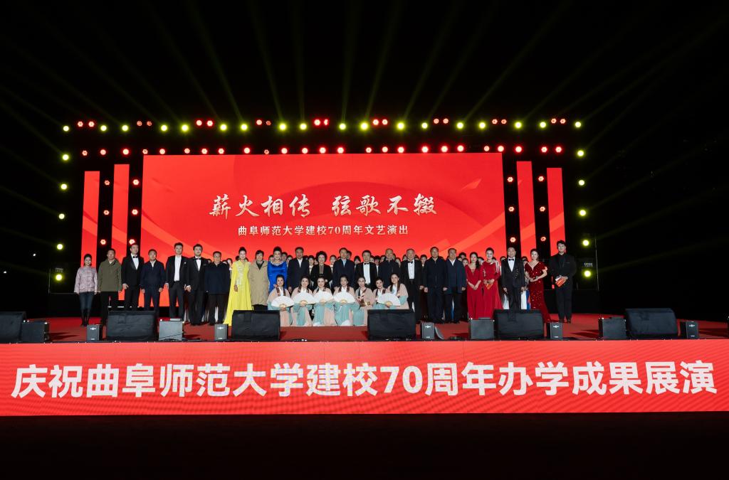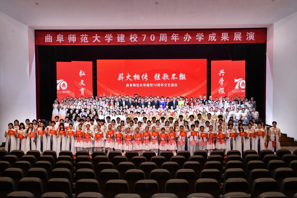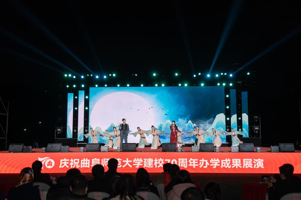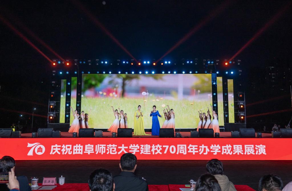 展演气势恢宏、流光溢彩,以歌曲联唱、舞蹈、诗朗诵、合唱等多种艺术形式联袂呈现,奏响了学校70周年华诞的精彩乐章,生动展现了三亿网页版登录入口七十年来在传承儒家文化、深耕教育科研、培育时代新人的征程中所书写的坚守史、创新史与育人史。整场演出热情洋溢,传递出矢志不渝建设世界知名的高水平孔子家乡大学的奋斗之志。