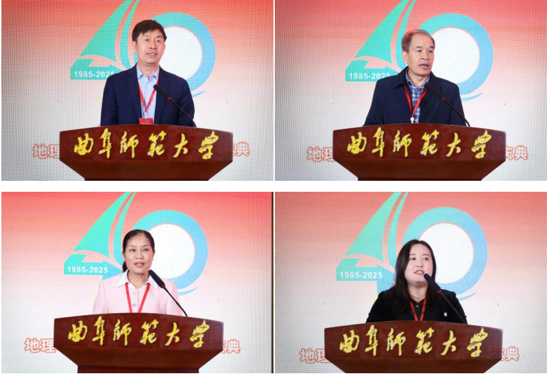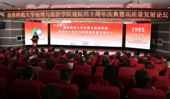 胡凡刚在致辞中指出,一代代“地理人”躬耕教坛、潜心育人,为学院和学校的发展作出了卓越贡献。四十年来,地理与旅游学院培养了近两万名优秀人才,他们在各自岗位上以卓越业绩展现了曲园人的时代风采。四十年来,学院始终与时代同频共振、与学校发展共进,坚持以“顶天”引领学术前沿,聚焦国家重大战略需求,深度参与黄河流域生态保护、乡村振兴等重大战略;坚定以“立地”服务区域发展,围绕山东省绿色低碳高质量发展先行区建设、山东半岛城市群建设等,打造了具有重要影响力的“曲园方案”。站在继往开来的历史新起点,面对新时代高等教育发展的新机遇,希望学院坚守育人初心,培育时代新人;强化使命引领,打造学科高峰;汇聚发展合力,共谱事业新篇,为学校“双一流”建设、为教育强国和现代化强省建设作出新的更大贡献。