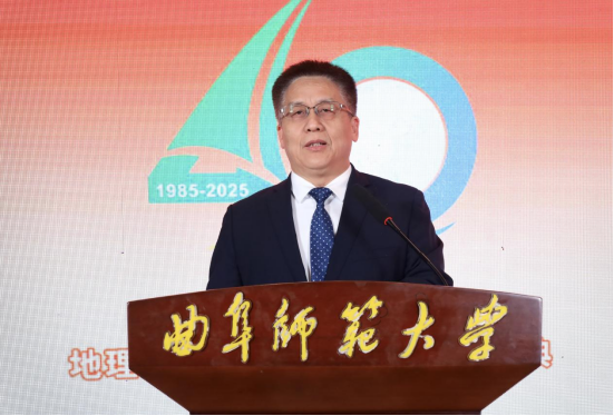 兄弟院校代表、山东地理学会会长、山东师范大学地理与环境学院院长王成新教授在致辞中,重温了两校两院之间的深情厚谊,并表示期待未来在地理学科建设、科研创新、服务社会等方面开展更深层次的合作,共同为推动山东省地理教育事业高质量发展贡献智慧和力量。