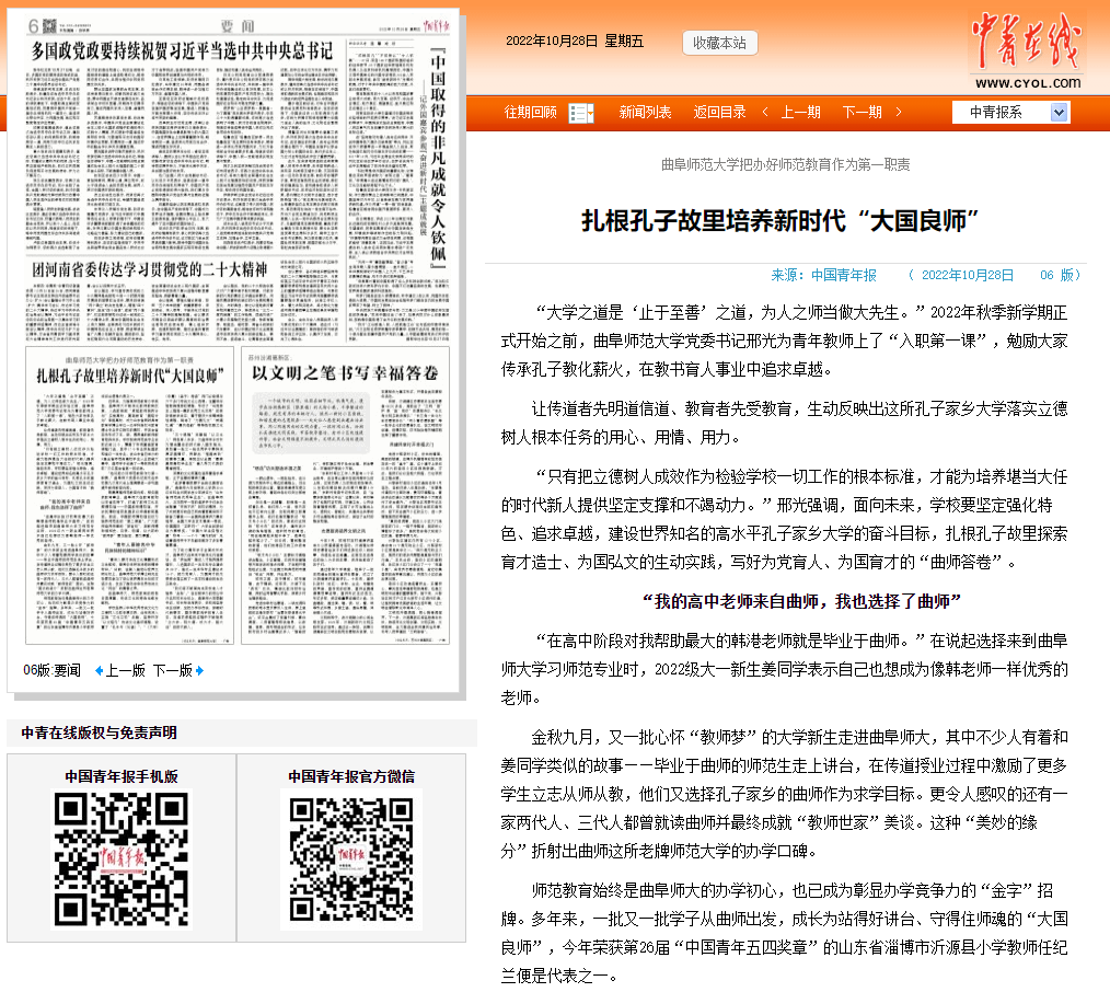 在曲阜师大,师范教育的底色日显厚重,传统文化的特色也愈发鲜明。