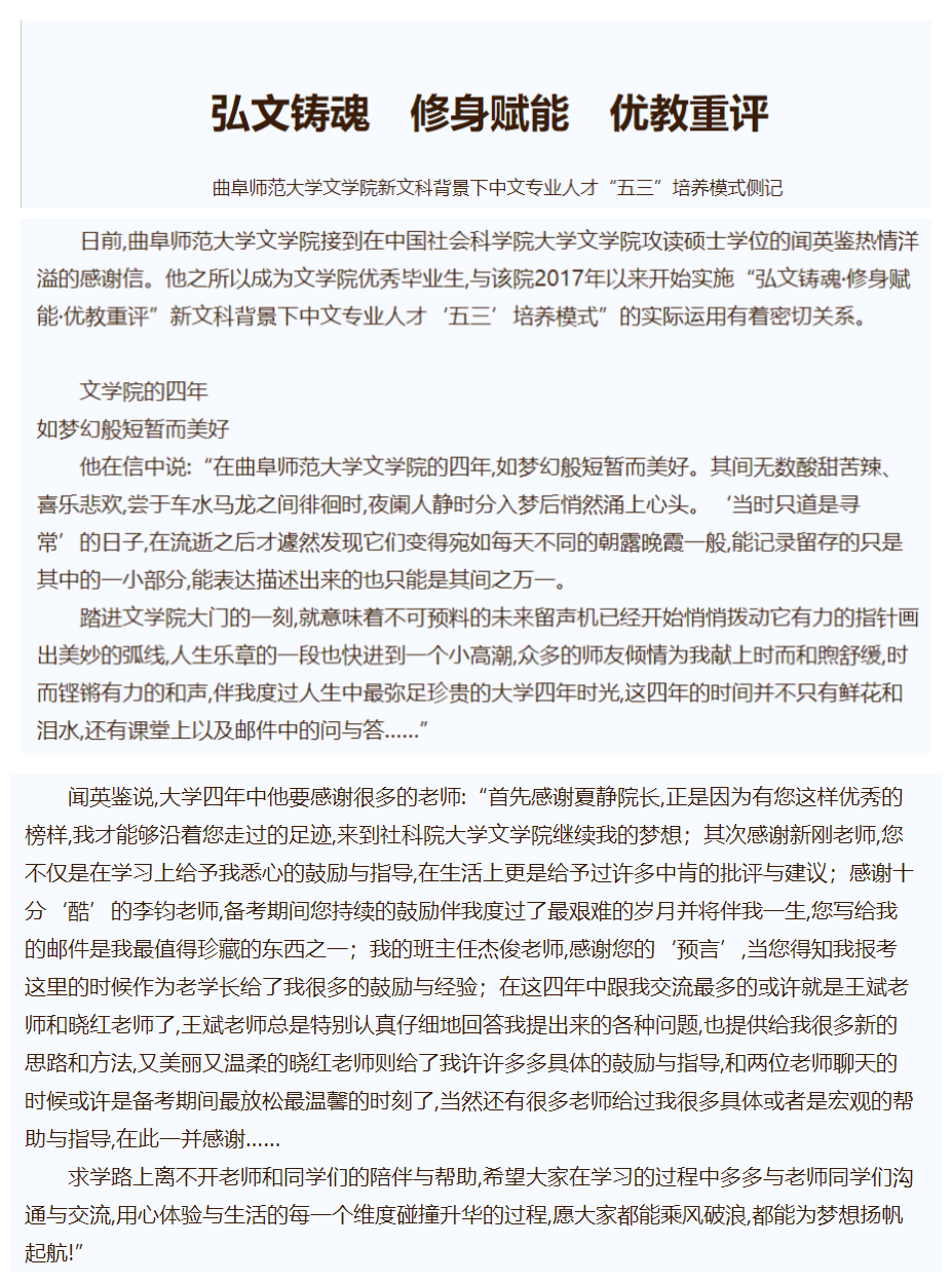 【齐鲁晚报】弘文铸魂 修身赋能 优教重评 ——三亿网页版登录入口文学院新文科背景下中文专业人才“五三”培养模式侧记