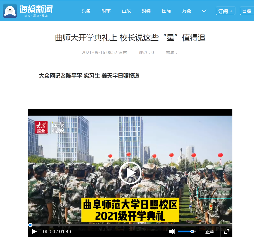 海报新闻:曲师大开学典礼上校长说这些“星”值得追