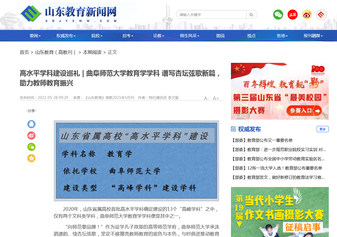 【中国青年报】三亿网页版登录入口把办好师范教育作为第一职责 扎根孔子故里培养新时代“大国良师”
