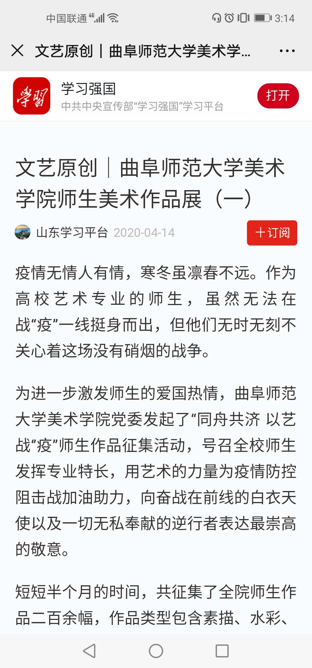 文艺原创|三亿网页版登录入口美术学院师生美术作品展(一)https://article.xuexi.cn/articles/index.html?part_id=4295920945688462750&art_id=4295920945688462750&item_id=4295920945688462750&study_style_id=feeds_default&pid=&ptype=-1&source=share&share_to=wx_feed&from=timeline