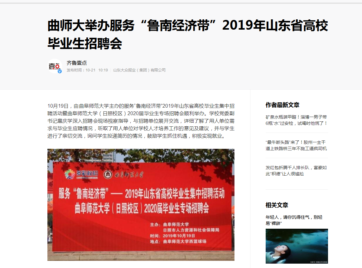 齐鲁壹点 报道链接:http://baijiahao.baidu.com/s?id=1647967687892333979&wfr=spider&for=pc