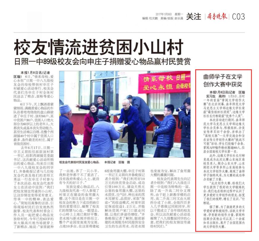 齐鲁晚报:曲园学子在文学创作大赛中获奖