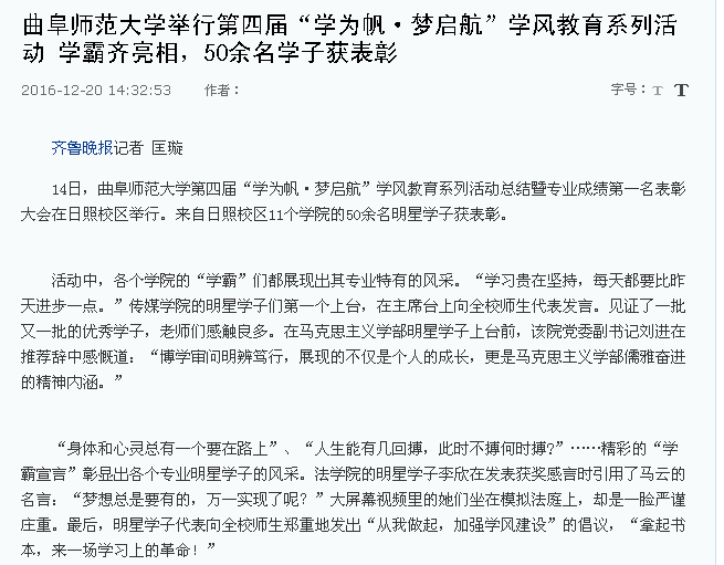 齐鲁晚报:三亿网页版登录入口举行第四届“学为帆·梦启航”学风教育系列活动 学霸齐亮相,50余名学子获表彰