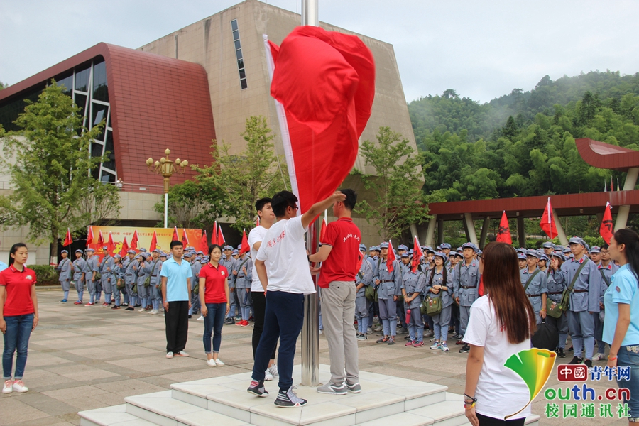 每天清晨,所有队员准时集合在广场参加升旗仪式。仪式感、纪律性,当鲜红的五星红旗在基地广场冉冉升起的时候,这抹红色,在这片红色土地上,无比亮丽。中国青年网通讯员 高帅 摄