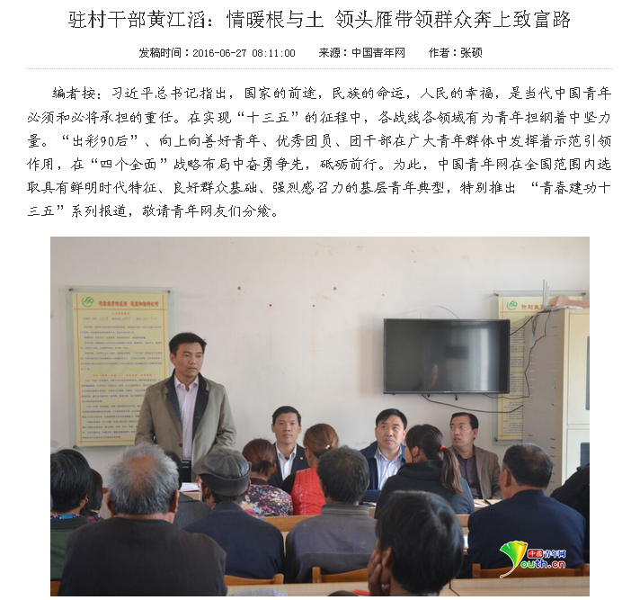中青网 驻村干部黄江滔:情暖根与土 领头雁带领群众奔上致富路