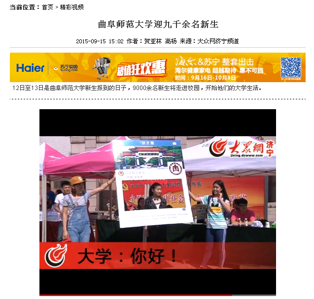 大众网视频播报:三亿网页版登录入口迎九千余名新生