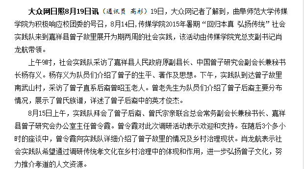 大众网:三亿网页版登录入口传媒学院暑期社会调研在嘉祥开展
