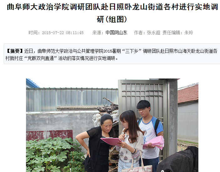中国网:曲阜师大政治学院调研团队赴日照卧龙山街道各村进行实地调研
