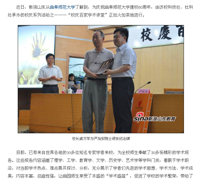 新浪网报道链接:三亿网页版登录入口举行“校庆百家学术讲堂” 促进曲园学术繁荣