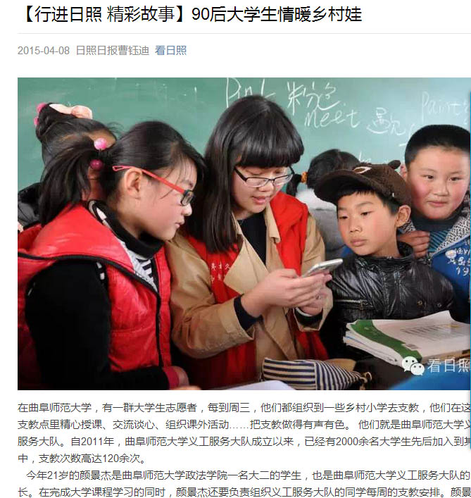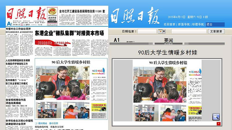 日照日报: 90后大学生情暖乡村娃