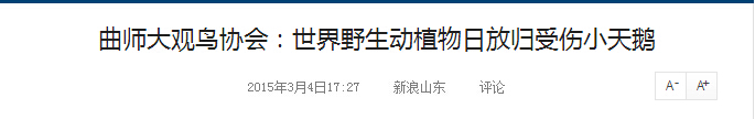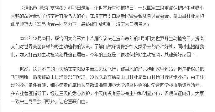 新浪网:曲师大观鸟协会 世界野生动植物日放归受伤小天鹅
