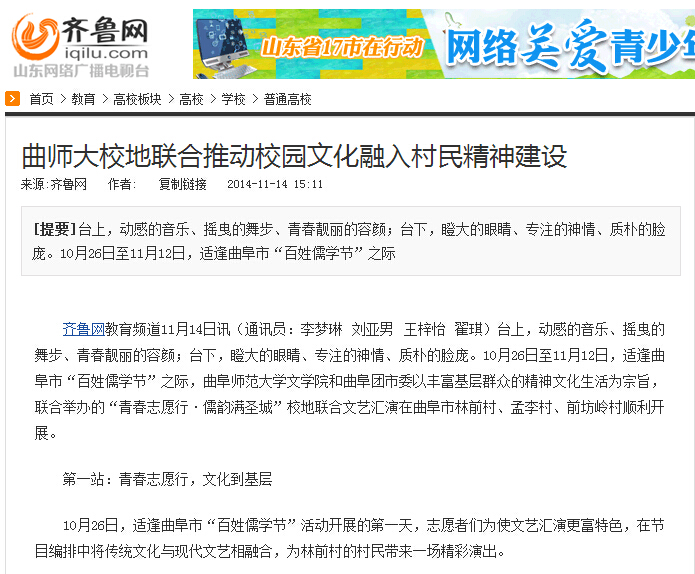 齐鲁网:曲师大校地联合推动校园文化融入村民精神建设