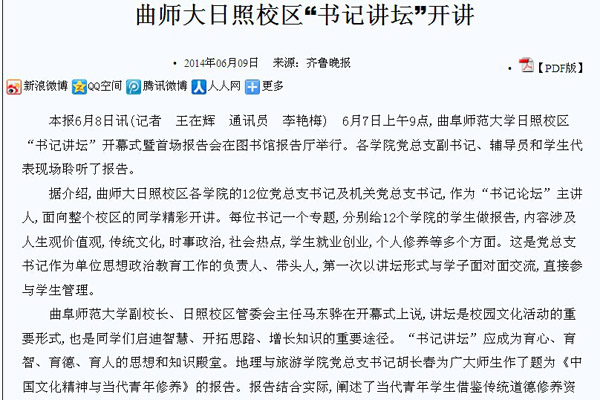 齐鲁晚报:三亿网页版登录入口日照校区“书记讲坛”开讲