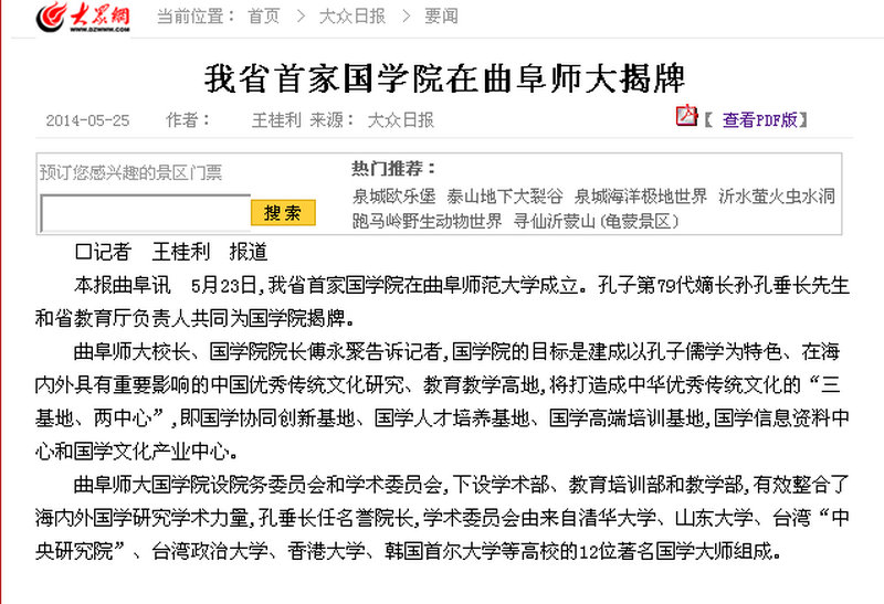 大众日报:我省首家国学院在曲阜师大揭牌