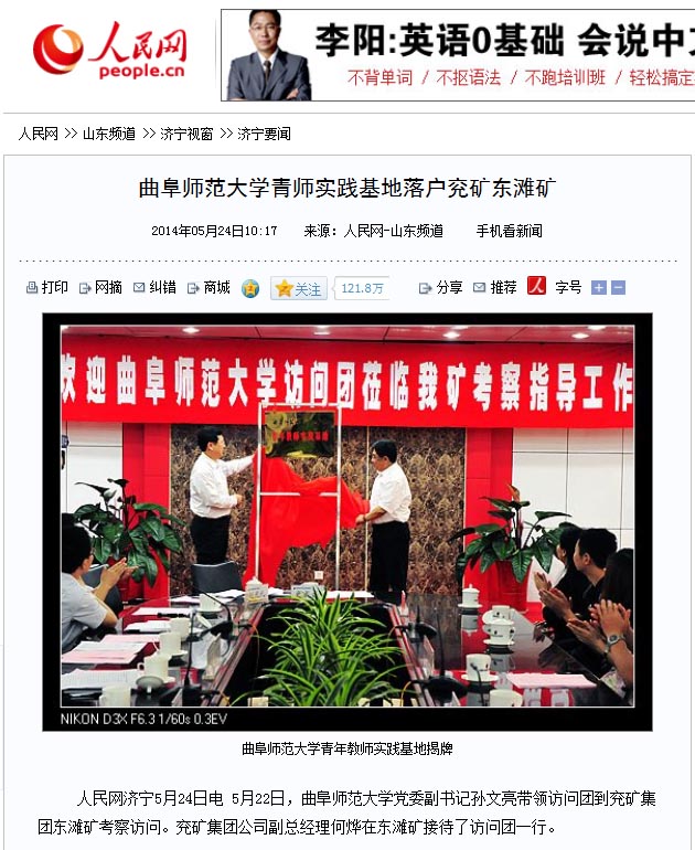 人民网:三亿网页版登录入口青师实践基地落户兖矿东滩矿