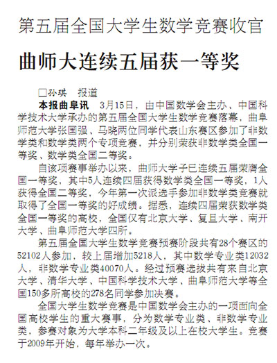 大众日报:曲师大连续五届获一等奖
