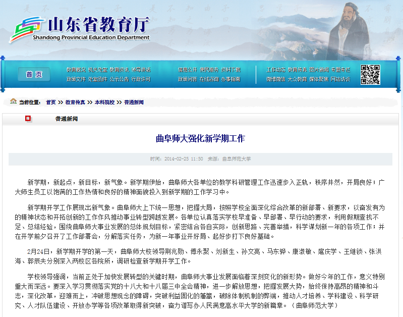 山东省教育厅:曲阜师大强化新学期工作
