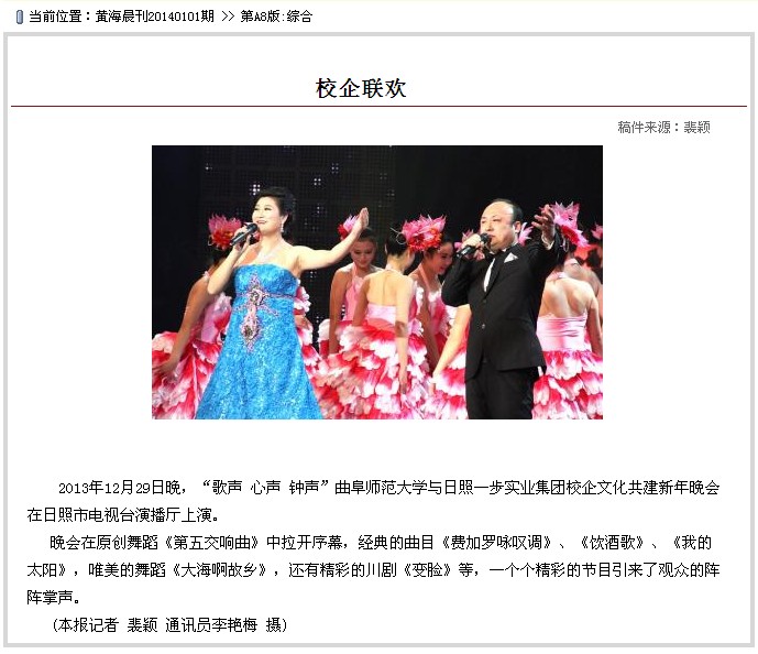 齐鲁晚报:校企文化共建曲师大举办晚会