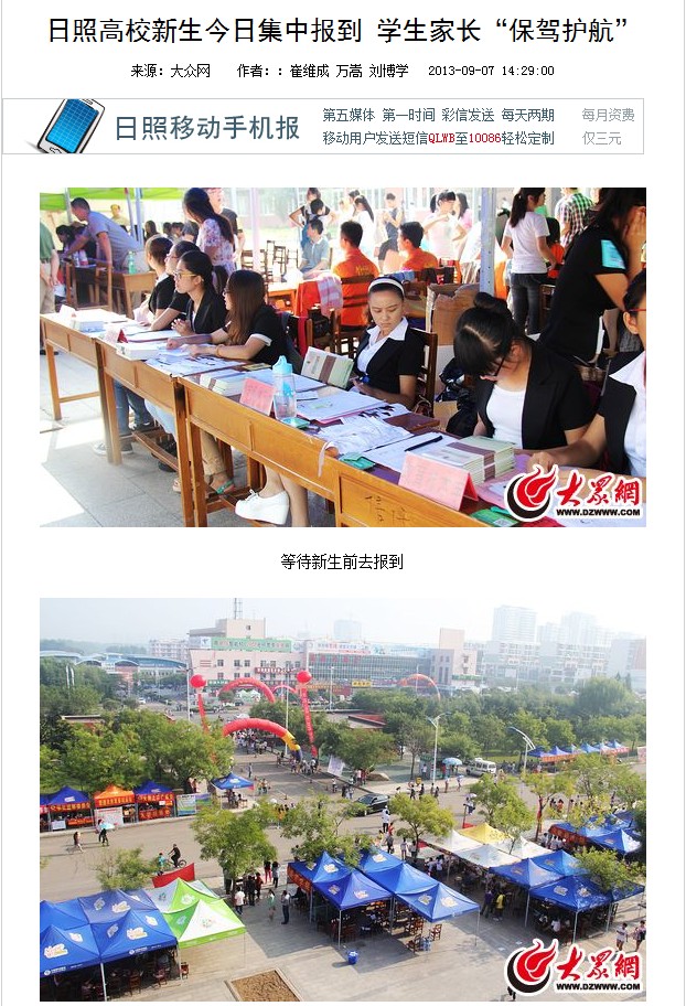 大众网:日照高校新生今日集中报到