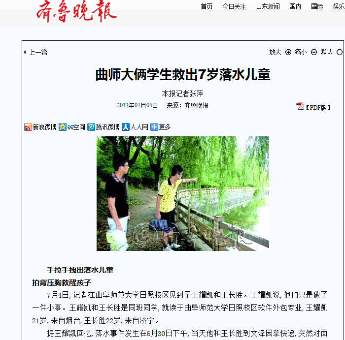齐鲁晚报报道链接 半岛都市报报道链接 人民网报道链接 新浪网报道链接 (作者:侯彦平 来源:齐鲁晚报 半岛都市报 编辑:新闻中心总编室 责编:杨秀娟)