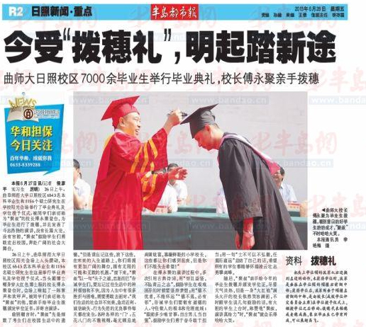 半岛都市报:今受“拨穗礼” 明起踏新途 齐鲁晚报报道:新征途 新浪网报道