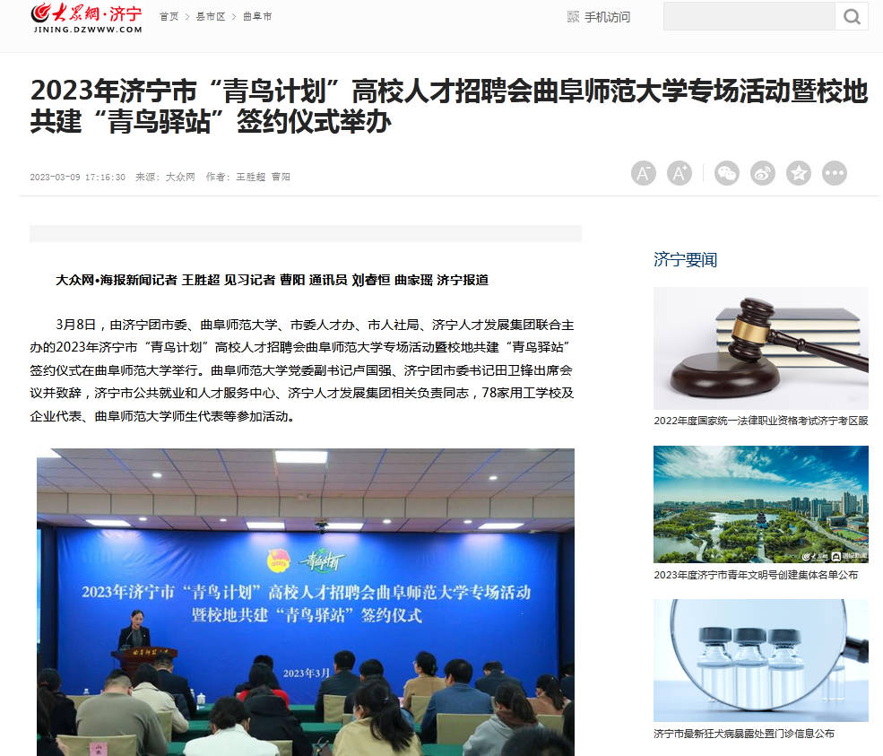 报道链接:http://jining.dzwww.com/xsq/qfs/202303/t20230309_11525336.htm