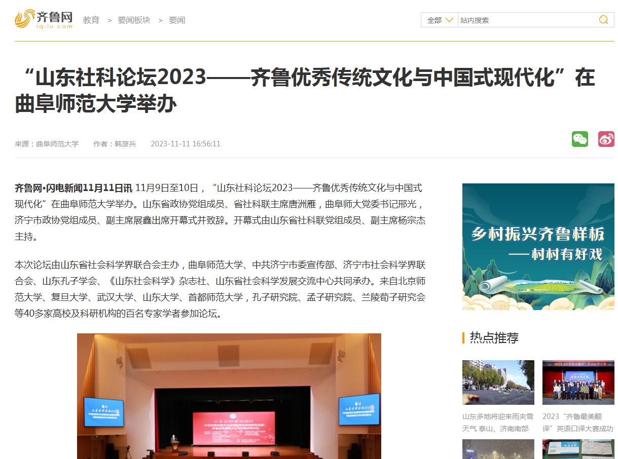 【齐鲁网】“山东社科论坛2023——齐鲁优秀传统文化与中国式现代化”在三亿网页版登录入口举办