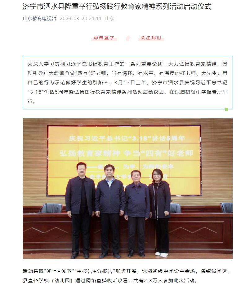 山东教育电视台报道链接:https://mp.weixin.qq.com/s/GQ6nDVILtlg0tiqreRRehA