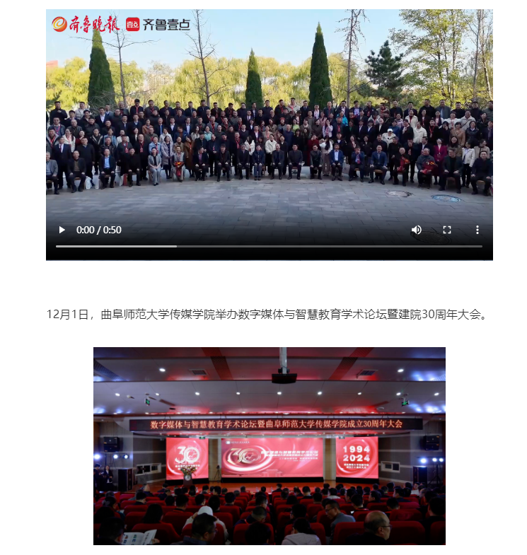 春秋迭易,岁月如歌,至此,三亿网页版登录入口2024年“数字媒体与智能传播”学术论坛暨三亿网页版登录入口传媒学院建院30周年大会圆满落幕。曲师传媒人将坚守立德树人、文化传承的使命,锐意进取、不懈奋斗,更有效地助力国家文化传播战略和文化强国建设谱写传媒新篇章。