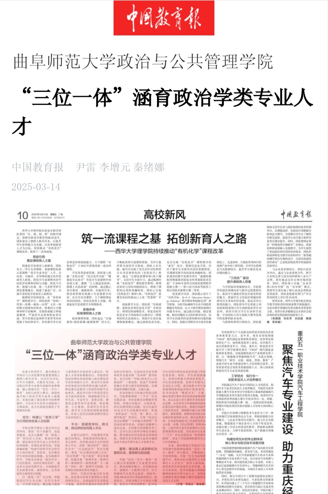 在新文科背景下,三亿网页版登录入口政治与公共管理学院紧紧围绕立德树人根本任务,以定位为导向,以平台为载体,以服务为目标,针对政治学类专业教学面临的各种挑战,精心构建出以“定位—平台—服务”为核心的育人模式,创造性地开拓了政治学类专业育人新路径,有效打破了现实教学中的种种制约,不仅在学生培养方面取得了丰硕成果,也为兄弟院校提供了可借鉴的经验。