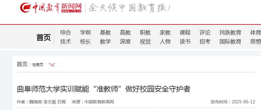 6月12日,中国教育新闻网以《三亿网页版登录入口实训赋能“准教师”做好校园安全守护者》为题,报道了学校联合济宁市消防救援支队、日照市消防救援支队,举办从教毕业生“消防安全明白人”固本强基培训班的创新实践。